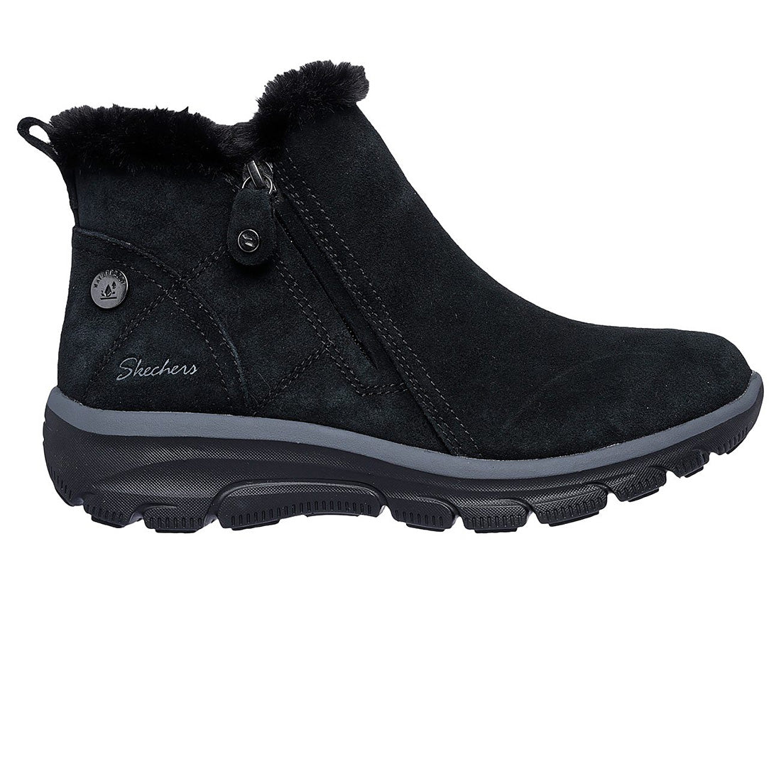 Skechers Relaxed Fit: Easy Going - High Zip 2 er en vandtæt ankelstøvle i sort ruskind med blødt imiteret pelsfor. Lynlås i siden gør den let at tage på, og Air-Cooled Memory Foam indersålen giver varme og komfort hele vinteren.