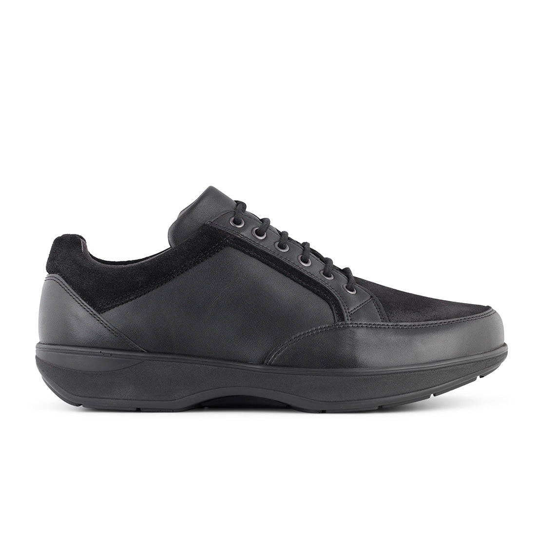 New Feet snøresko i sort skind med orthostretch i overlæderet. Skoen har en 6mm udtagelig og protektor stødabsorberende indlægsål samt en gummisål med gængefunktion. Vidde W - ekstra bred. Medium gængefunktion.