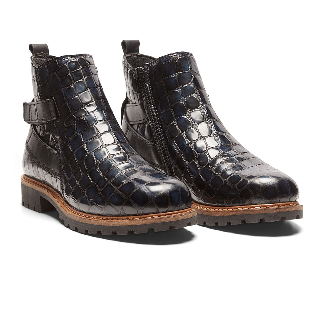 New Feet støvle i sort kalveskind med struktur og indvendig lynlås og velcrorem på ydersiden. Støvlen har en udtagelig 6mm Protektor optimal støddæmpning og beskyttelse indlægsål. Sort gummi med fleksibel forfod og stabil hæl. Læste S