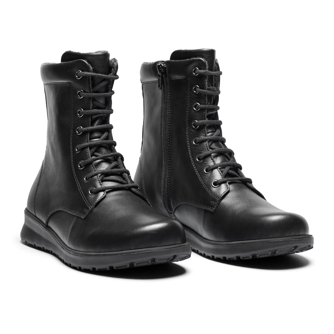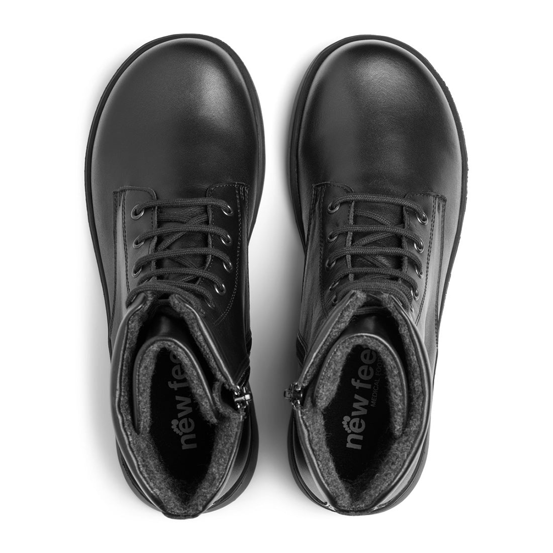 NEW FEET sort skind støvle m. snøre og lynlås