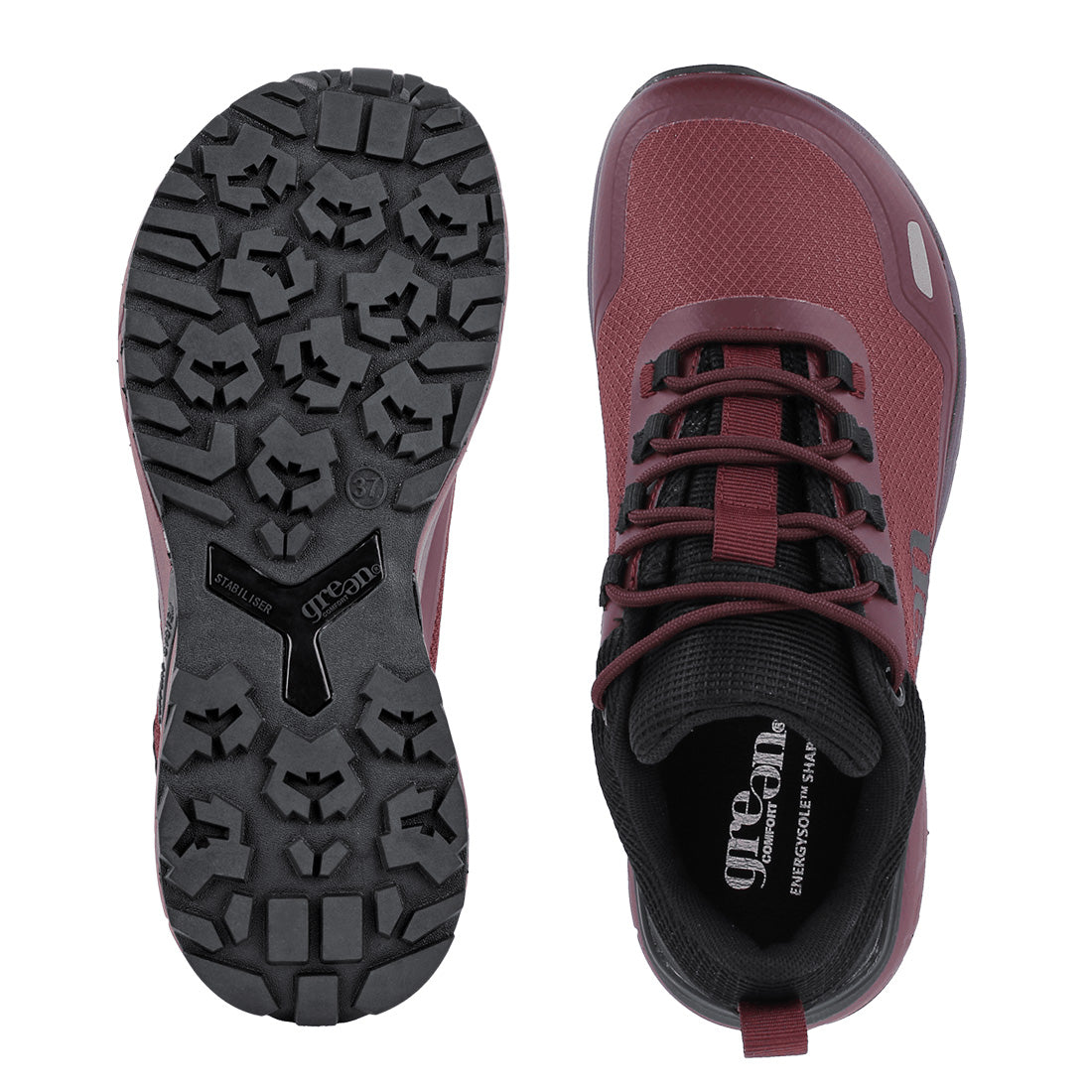 Trysil i bordeaux er en let og stabil outdoor-sko med stødabsorberende EnergySole Shape, svangstøtte og ekstra komfort under hæl og forfod. Skridhæmmende gummisål, snørebånd for perfekt pasform og rummelig H-læst med god plads.