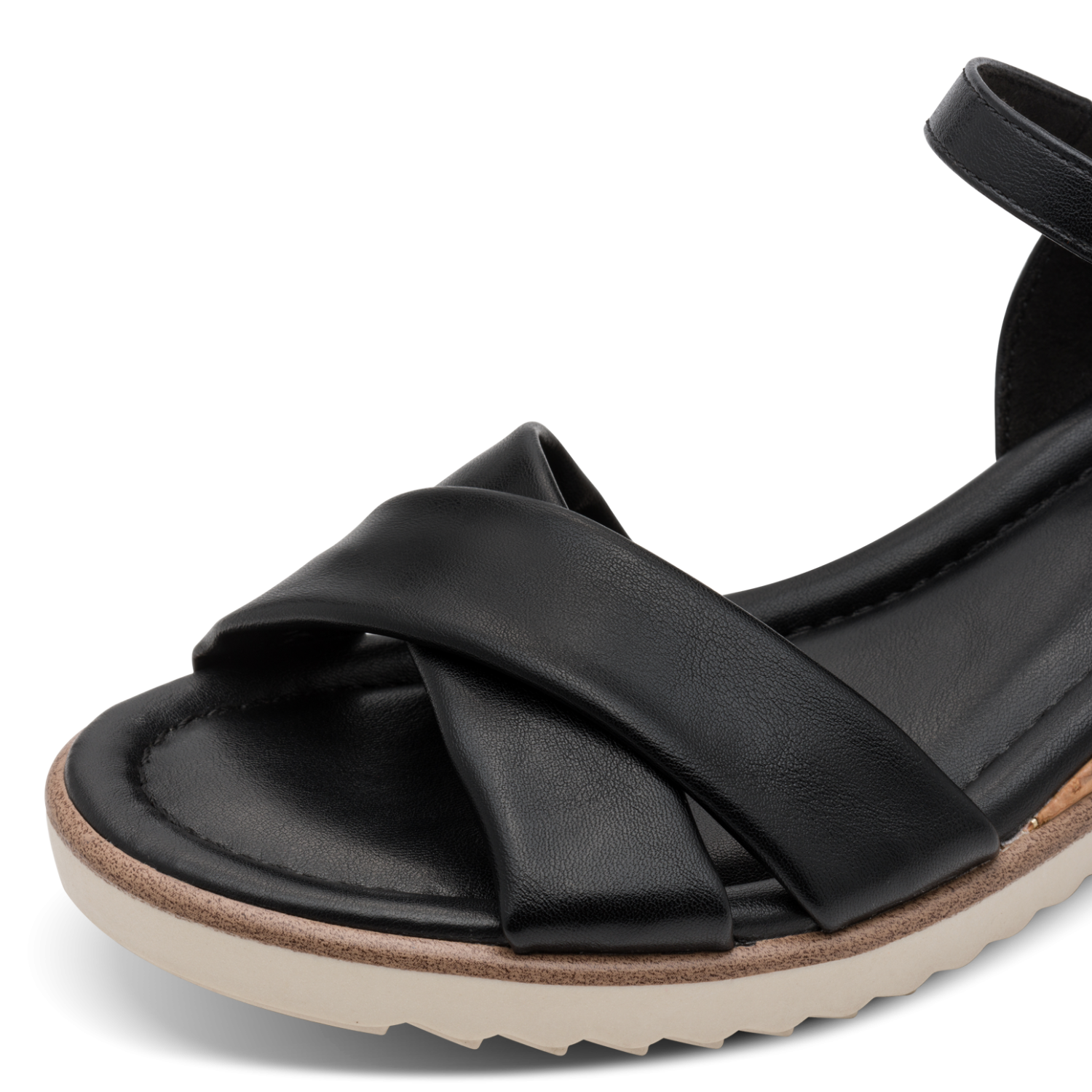 Tamaris 28106-001 i sort er en stilren og komfortabel damesandal, designet til både hverdag og sommerens aktiviteter.