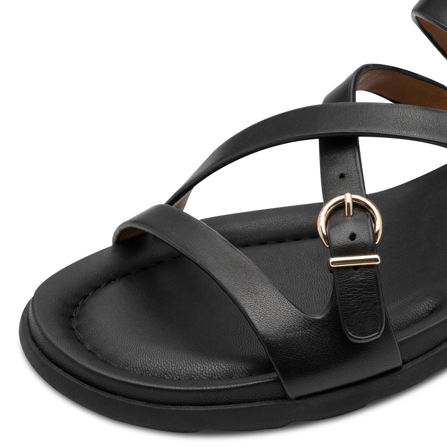 Sandalen har et stilrent design med feminine remme, som giver et moderne og let udtryk. Den klassiske sorte farve gør modellen nem at kombinere med både kjoler, bukser og sommerlige outfits.