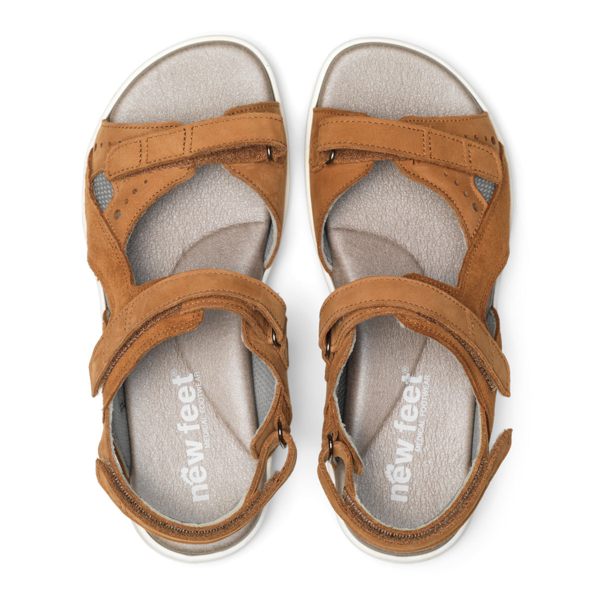New Feet 211-19-1533 i cognac nubuck er en komfortabel damesandal i wide fit, designet til fødder der har brug for ekstra plads og stabil støtte.