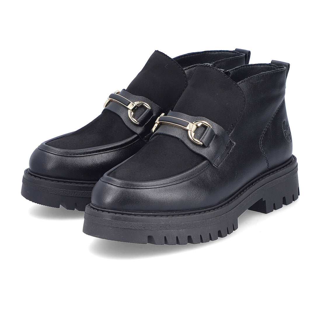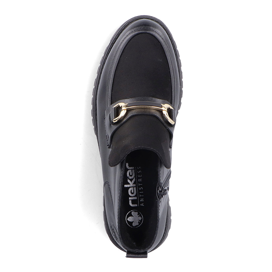 Sort skind loafer støvle med guld spænde fra Rieker. Støvlen har varmt foer.